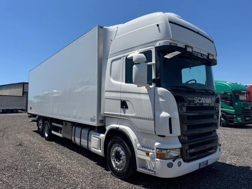 Scania R420 motrice frigorifera – Anno 2005, tachigrafo a disco e cambio automatico con frizione.